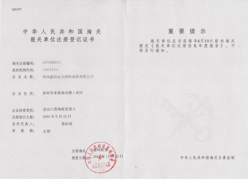 鄭州建信耐材先后參與起草國家建材及行業(yè)標準:《高鋁抗剝落磚、系列耐堿磚及系列硅莫磚》、《水泥回轉(zhuǎn)窯協(xié)同處置用耐火材料抗侵蝕實驗方法》、《耐火材料及砌筑使用規(guī)程》和《石灰窯砌筑技術(shù)條件》。公司近年來先后榮獲“國家科技型企業(yè)”、“高新技術(shù)企業(yè)”、“河南省綠色工廠”“河南省綠色發(fā)展先進型企業(yè)”“環(huán)??冃級企業(yè)”、鄭州市“專精特新企業(yè)”“市長質(zhì)量獎”等殊榮。