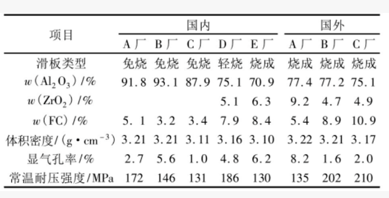 目前,國(guó)內(nèi)外滑板材質(zhì)仍然以鋁碳質(zhì)、鋁鋯碳質(zhì)為主。另外,對(duì)于特殊鋼的澆注,還使用鎂碳質(zhì)、鎂尖晶石質(zhì)、尖晶石碳質(zhì)和鋯質(zhì)滑板。