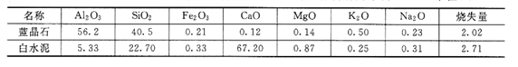 以藍(lán)晶石作主要原料,以白水泥作結(jié)合劑研制了鈣長石結(jié)合莫來石輕質(zhì)隔熱耐火磚。原料的成分見表3。鈣長石結(jié)合莫來石隔熱材料是以莫來石作為主晶相,鈣長石作為結(jié)合相的復(fù)合材料。鈣長石的熔點(diǎn)只有1550℃,但具有熱膨脹系數(shù)小、熱導(dǎo)率低等特點(diǎn)。因此,鈣長石和莫來石復(fù)合制得的隔熱耐火材料,可以既具有鈣長石熱導(dǎo)率低的優(yōu)點(diǎn),又具有莫來石制品使用溫度高的特點(diǎn),同時(shí)還具有較低的燒結(jié)溫度、較高的強(qiáng)度和較好的熱震穩(wěn)定性。